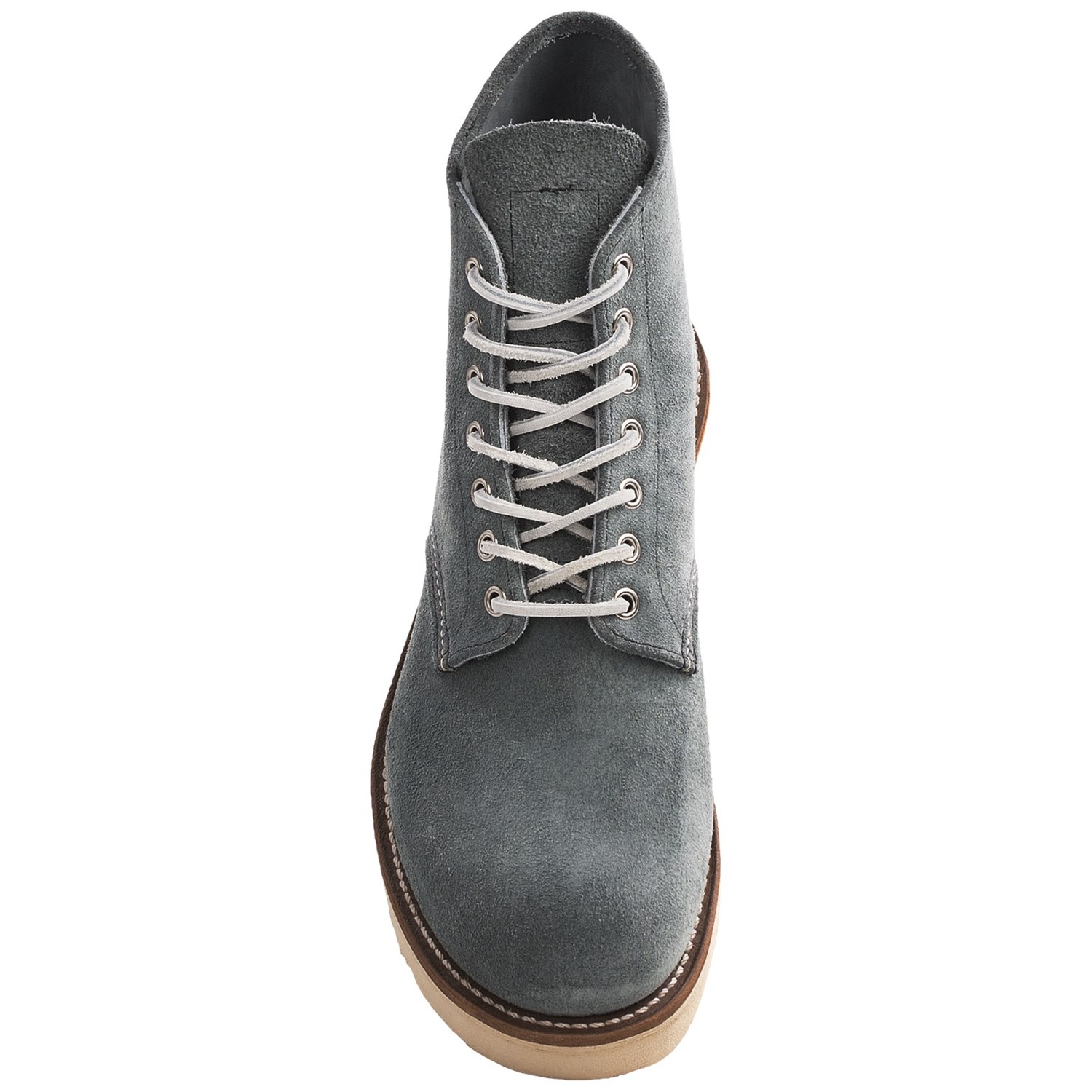 Factory 2nds. Nothing like some rockin' grey suede to get your casual vibe going, and the Red Wing Heritage 8144 boots serve it up in a style consistent with the brand's legendary aesthetic -- with white rawhide laces and matching Traction Tread sole.