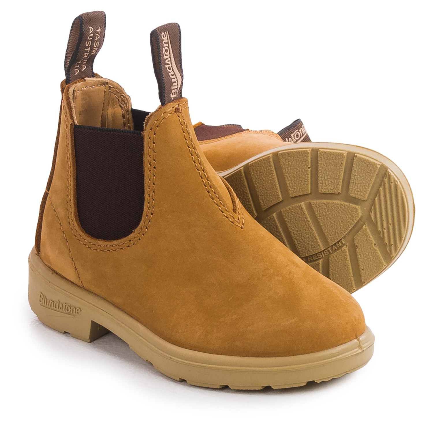Blundstone Factory 2nds. These cute and charming Blundstone Blunnies Chelsea boots are made of velvety-soft nubuck with stretchy gore insets to keep your toddler comfortable while running around. The oil- and acid-resistant outsole helps prevent slips.